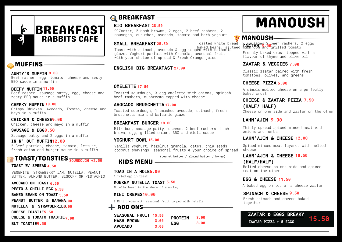 Welcome to Rabbits Cafe Coffee & Breakfast, a charming cafe nestled in the heart of Roselands at 1206 Canterbury Rd. With a reputation for serving up delectable meals and exceptional coffee, this beloved spot is the perfect haven for breakfast enthusiasts and coffee connoisseurs alike.